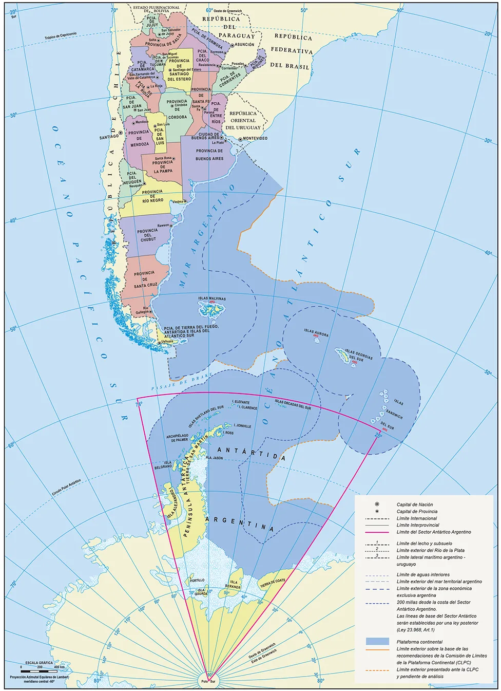 La Argentina es una bestia bicontinental, el 8vo país más grande del mundo. Entre la superficie terrestre y acuática suma alrededor de 10 millones de km2. Tiene salida directa al Atlántico Sur, con más de 4.700 km de litoral marítimo. Se encuentra lindante al único paso bioceánico natural de sudamérica y tiene una proyección directa a la Antártida. Está alejada de las grandes potencias y un enorme océano la protege de probables invasiones desde el Oeste, al igual que la Cordillera de los Andes por el Este.